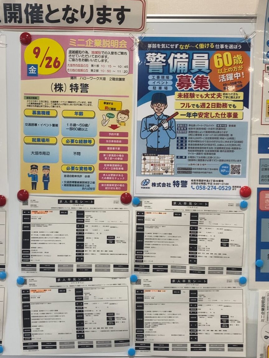 定期的に岐阜県内のハローワークでこのような求人活動を行っております。